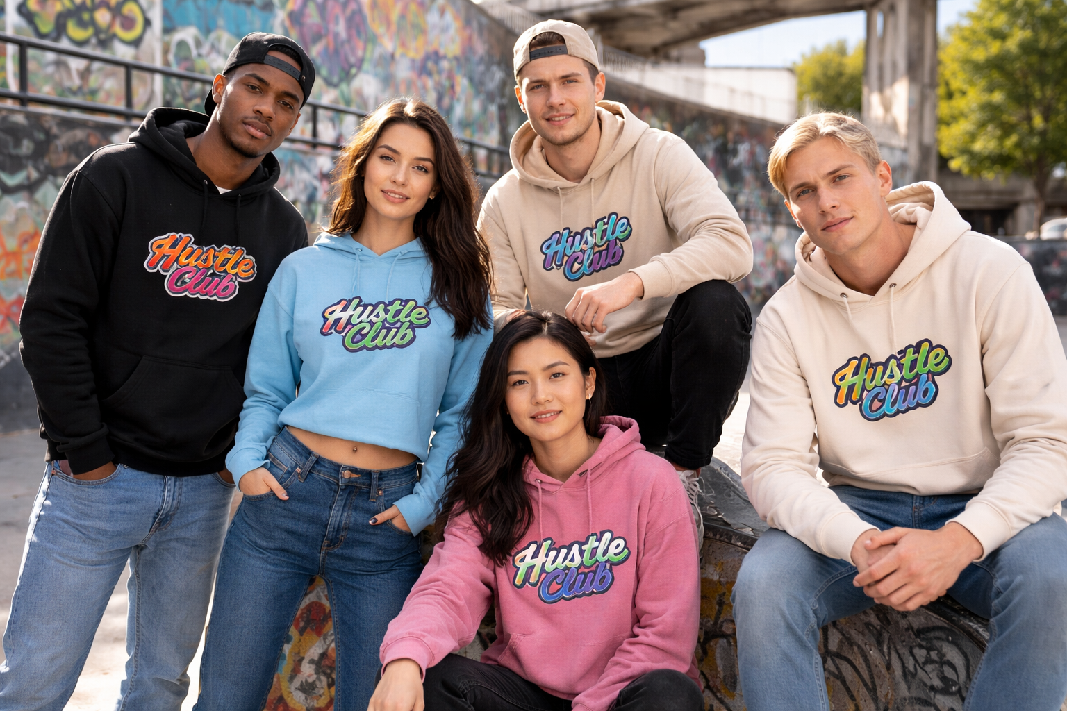 Looking for more than hoodies? Discover our full range of custom printing services including t-shirts, polos, workwear, and embroidery — all designed to elevate your brand.